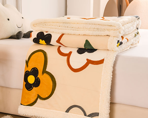 High Weight Cartoon Blanket: Double-layer thickened milk fleece, light beige & warm.