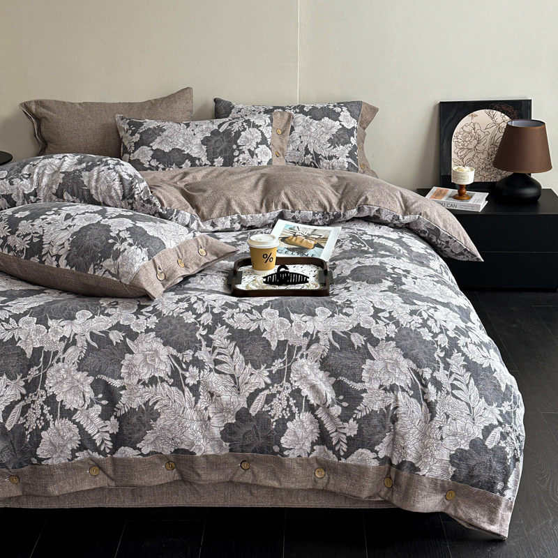 Autumn\u002F Winter New Arrivals A-Class Thickened High GSM Linen Retro Style Double Layer Printed Three-Piece Set and Four-Piece Set