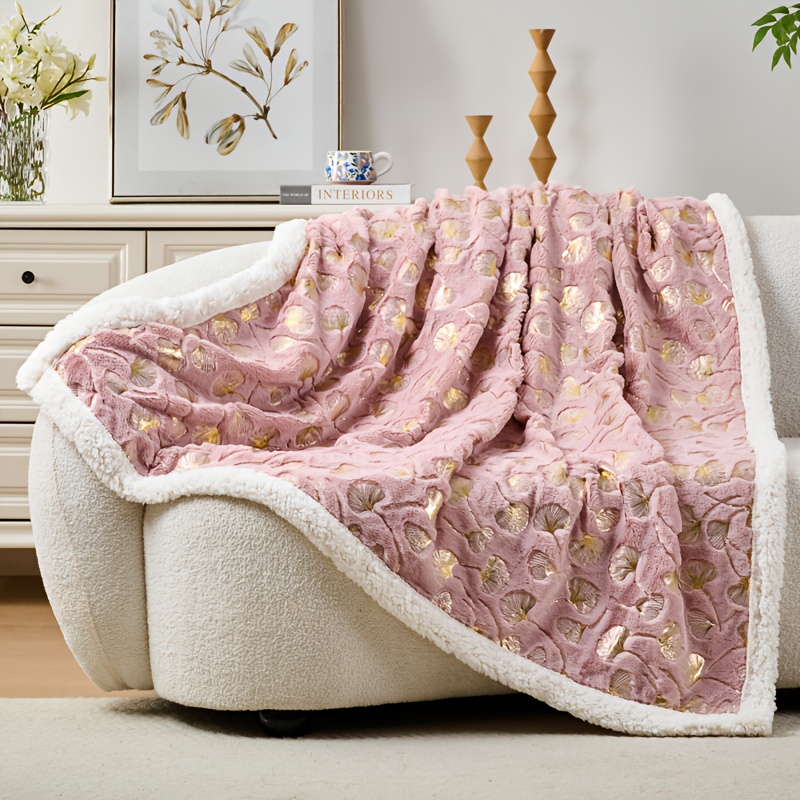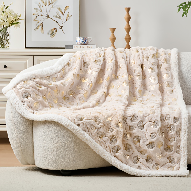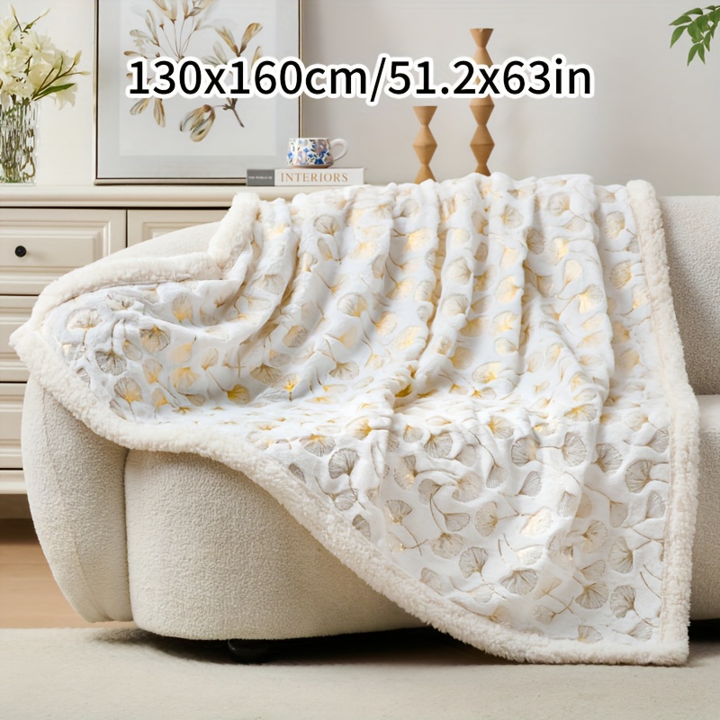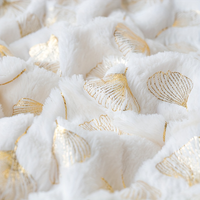 One Piece of Faux Rabbit Fur Ginkgo Leaf Blanket, Soft and Comfortable, Thickened for Warmth