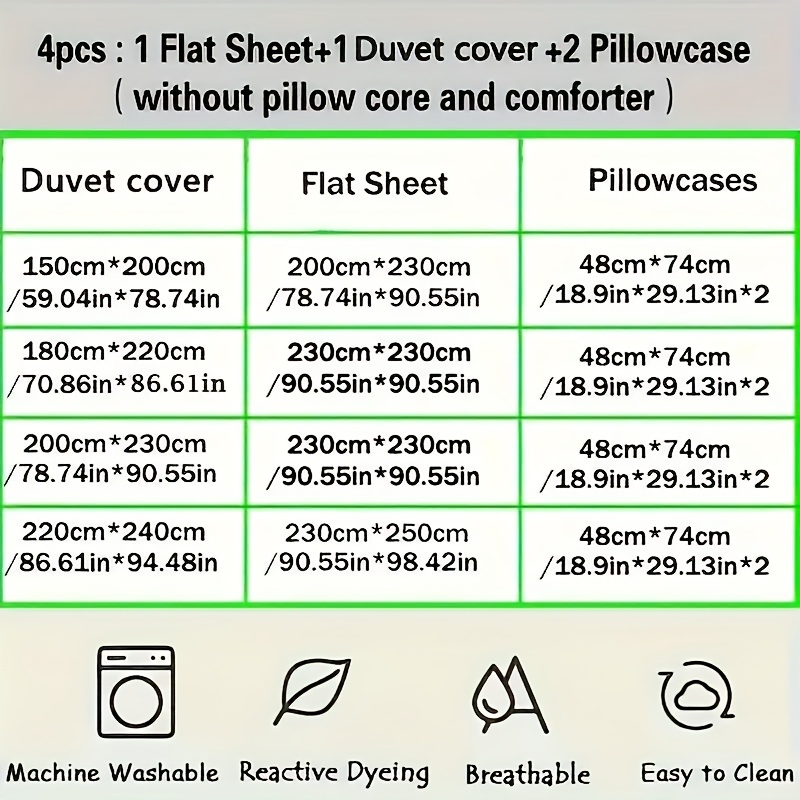 Quilt Set 4pcs quilt set (1*quilt cover + 1*bed sheet + 2*pillowcases, excluding quilt core)
