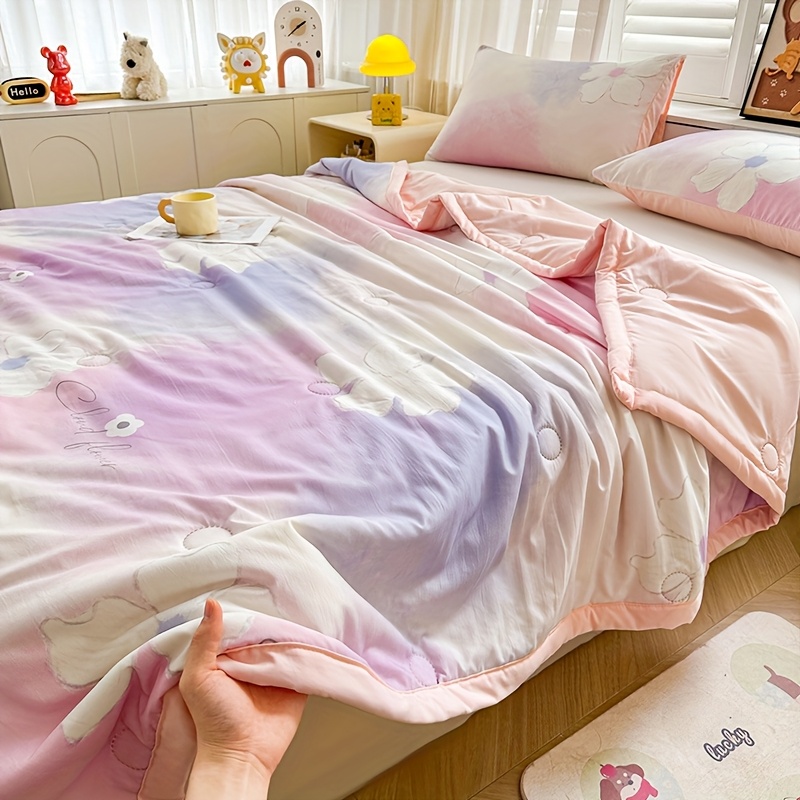 Ultra-Soft Four-season Quilt - Lightweight, Breathable & Light Beige-Friendly with Cartoon Print Design for All Seasons Cartoon Blanket