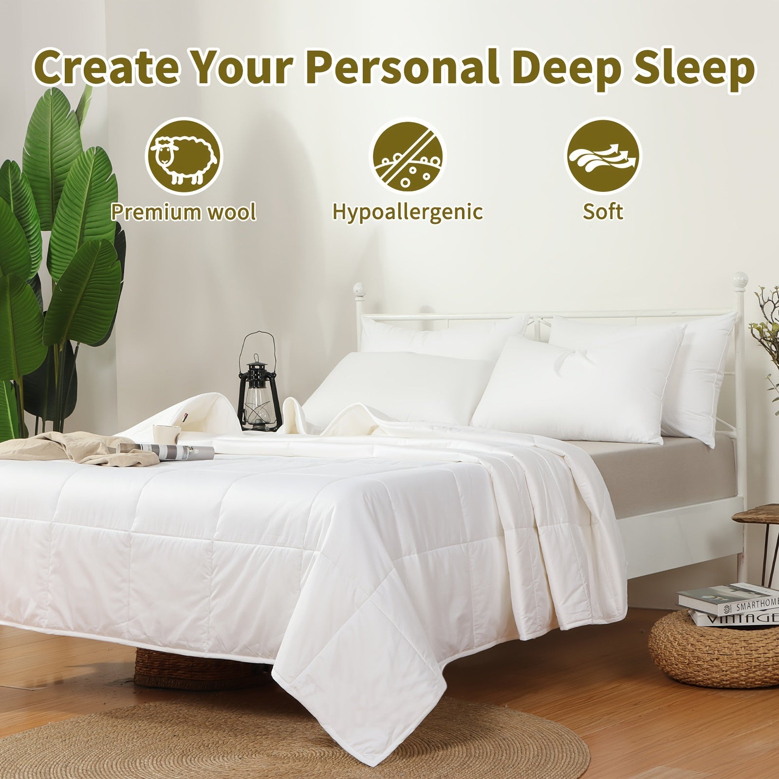 Reversible Luxury Wool Filled Comforter Set, 100% Australian Wool, Quilted Lightweight Summer Duvet Insert