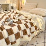 1pc Charming Checkered Plush Fleece Blanket, 400-450g Polyester, All-Season, Knitted