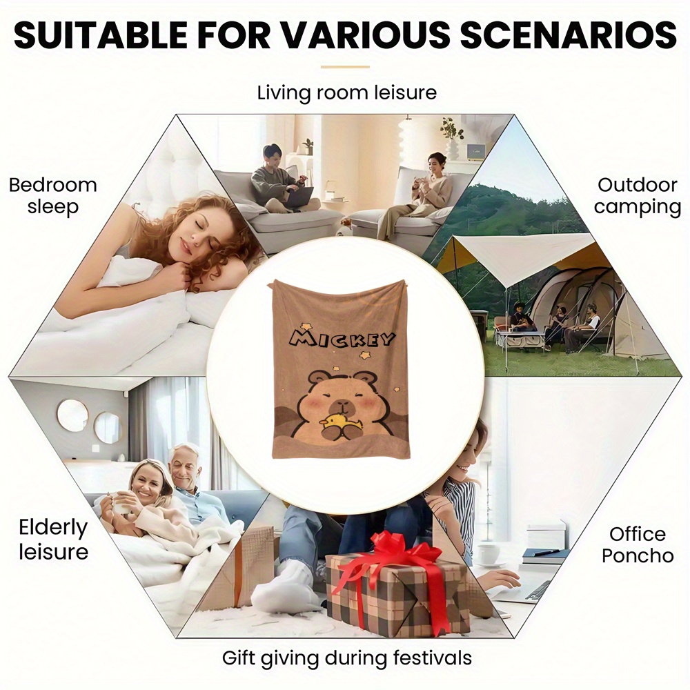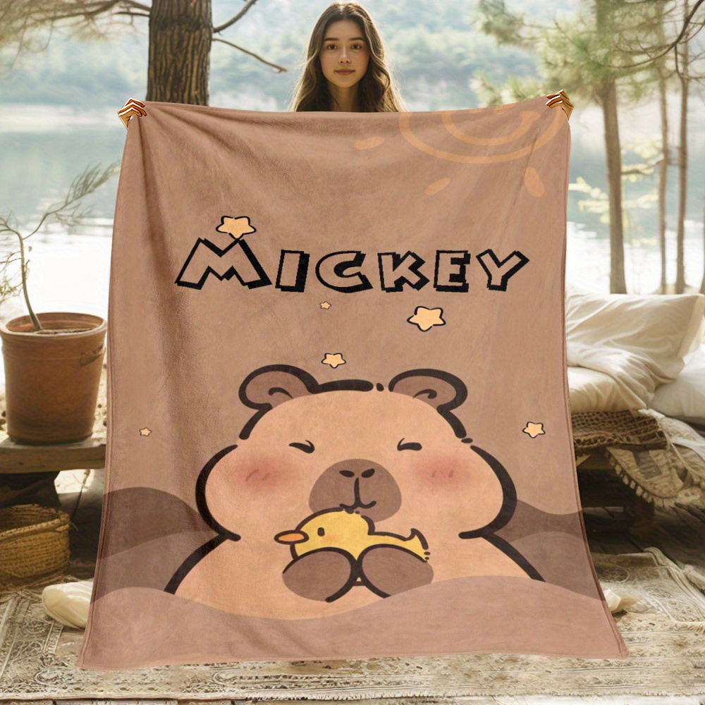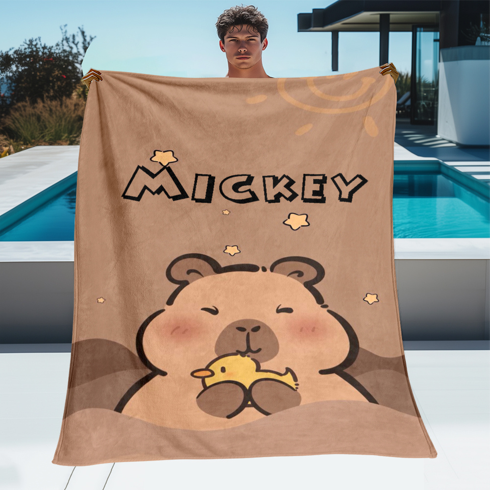 1pc Custom Name Capybara Flannel Throw Blanket - Soft Polyester Fiber, Machine Washable