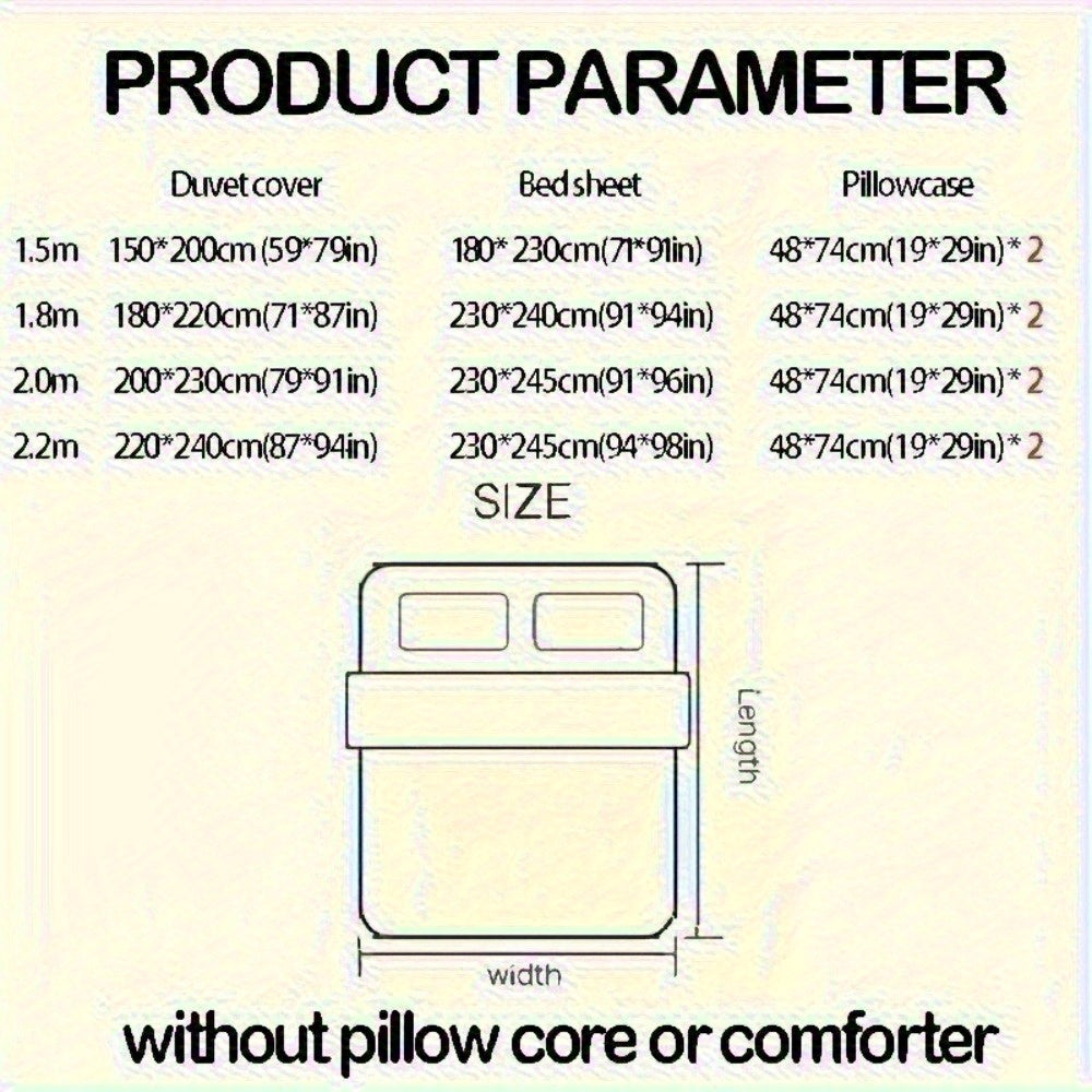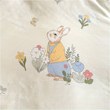 4pcs Bed Sheet Set Red and White Floral + Cute Rabbit Pattern, Fresh & Lovely Style