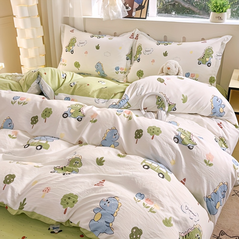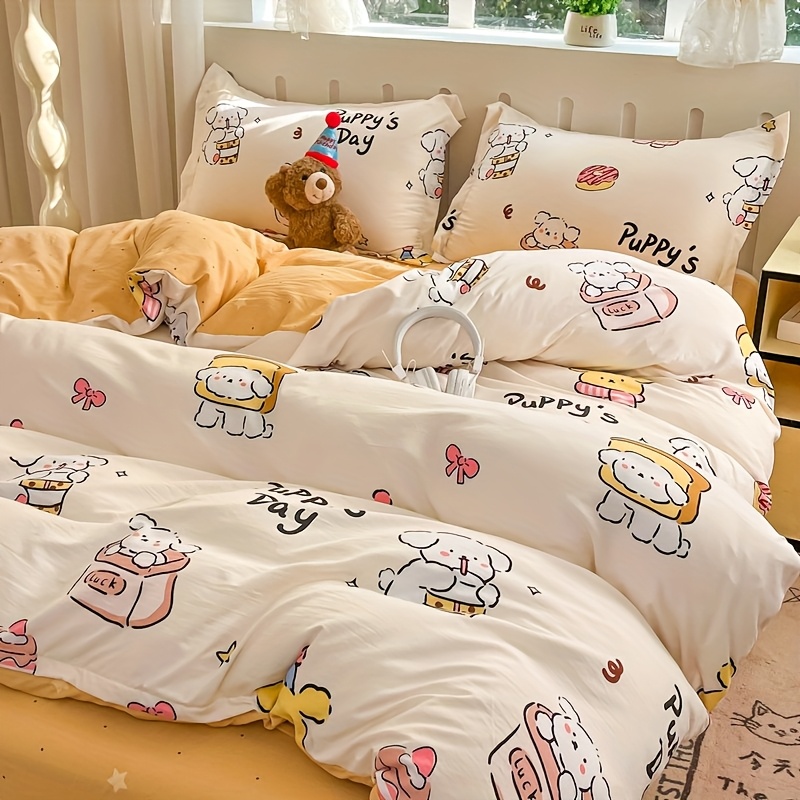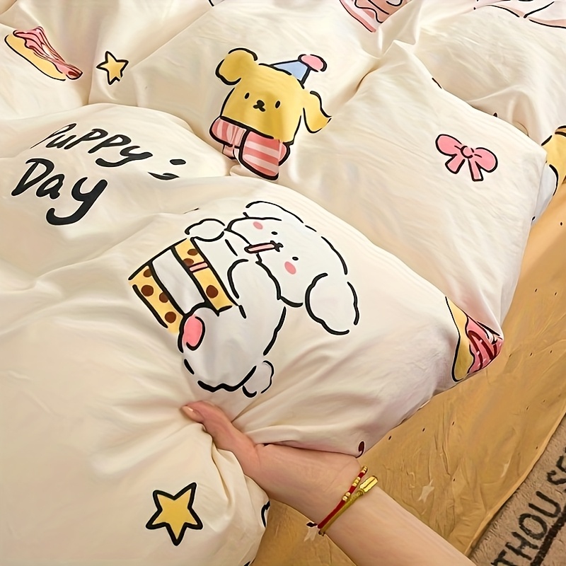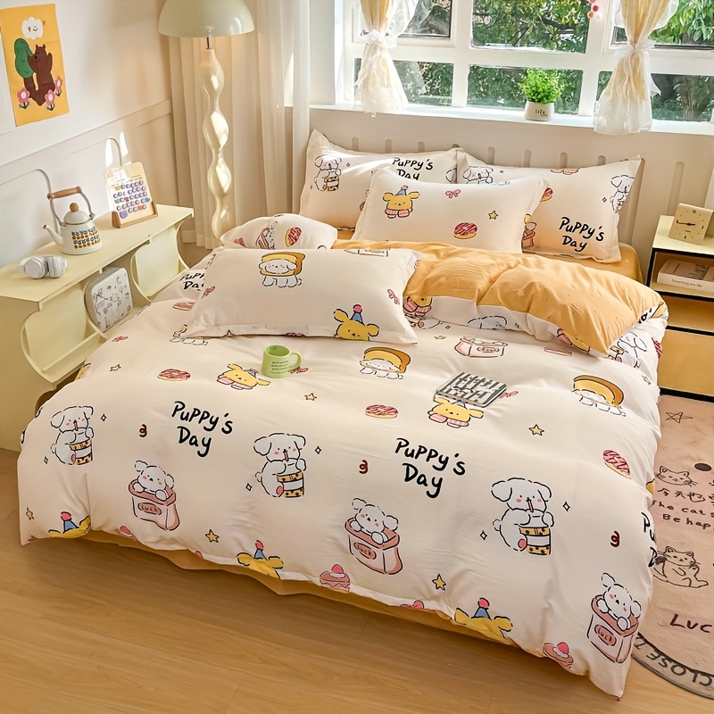 4pcs, Cartoon Four-Piece Set Duvet Cover*1+Fitted Sheet*1+Pillowcases*2, Soft and Delicate