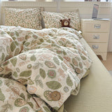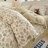 Fresh Dark Green and Light Brown Leaf Vine Pattern, Fresh Pastoral Style with Button Embellishments