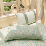 Green Floral Country Style Bedding Set 3\u002F4pcs (1 Duvet Cover + 1 Fitted Sheet + 2 Pillowcases) Synthetic Fabric