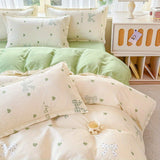 Green Love + Bow Modern Style Bedding Set (1 Duvet Cover + 1 Fitted Sheet + 2 Pillowcases)